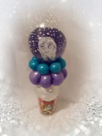 Individually wrapped candies in a 20oz domed cup, topped with balloons.